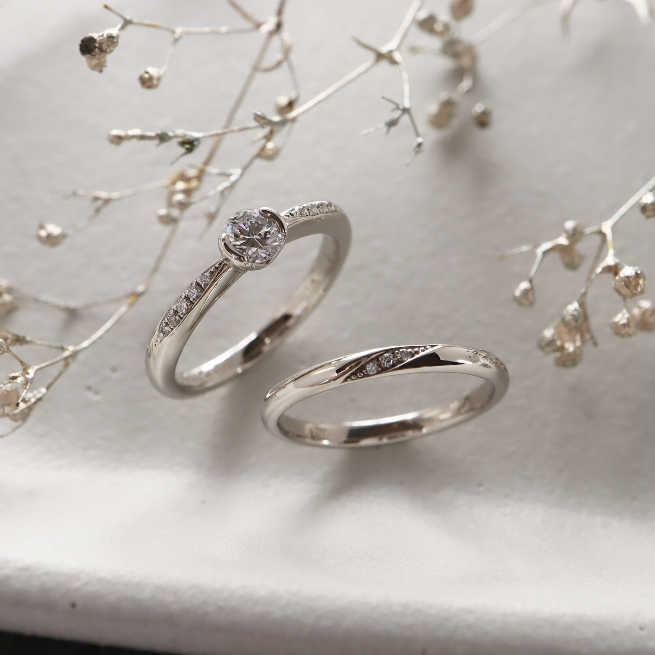 ストレートの結婚指輪との相性が良いので、
